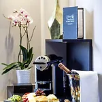 Servicen var udsøgt. Værelset var elegante og meget ren, sengen var virkelig dejlig. Jeg fik en lækker og forbløffende morgenmad med mange varianter, varme varer og røget laks. Elskværdigt og informativt personale, gratis vækningsservice og strygefaciliteter. Beliggenheden var exceptionel og betagende tæt på alt, og interiørdesignet var dejligt.